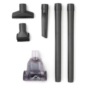 8′ stretch hose, (2) extension wands, crevice tool, dusting brush and upholstery tool